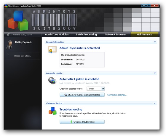 Скачать программу AdminToys Suite 2009 1.5.0.1500 (13,02 МБ):