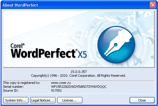 Скачать программу Corel WordPerfect Office X5 15.0.0.357 (345,51 МБ):