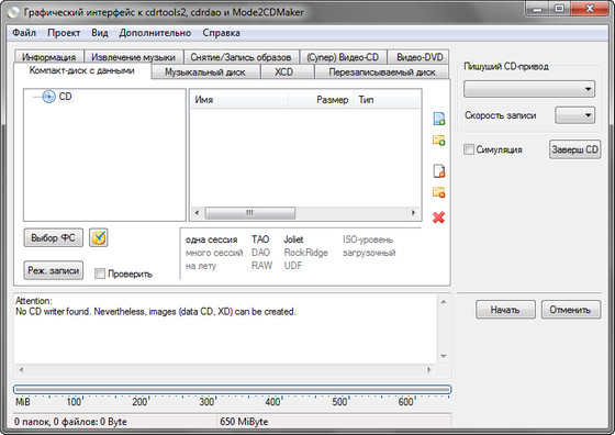 Программа для записи CD/DVD дисков. В отличие от других бесплатных программ записи дисков, cdrtfe обладает большой функциональностью и множеством профессиональных настроек. С помощью данного инструмента можно записать CD/DVD диски с данными, музыкальные CD-аудио диски, создать VCD, SVCD и DVD-видео диски. Кроме того, присутствует возможность снимать и записывать ISO-образы дисков, а также сохранять треки CD-аудио дисков с прямым кодированием в MP3, OGG или FLAC формат. Предусмотрен режим симуляции записи, благодаря которому можно уменьшить риск неправильной записи. Программа поддерживает сохранение проектов, интеграцию с Проводником Windows и работу из командной строки.