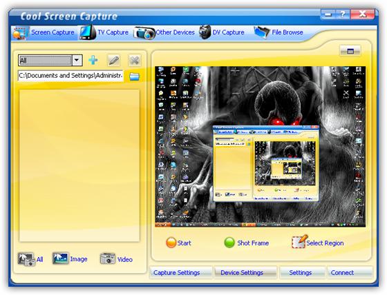 Cool Screen Capture is an excellent tool designed to accommodate customers' need. Professional technique and intuitive interface make it suitable for every customer. Customers can capture video or image from DV, TV Tuner and other devices. It can set video compression codec, device properties and camera properties. Cool Screen Capture still offers customers advanced screen capture function, you can capture any region of your desktop, even tricky items like tool tips, video displays.