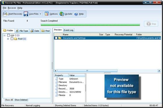 Recover My Files data recovery software will recover deleted files emptied from the Windows Recycle Bin, or lost due to hard drive format, virus infection, unexpected system shutdown or software failure. It has full options to search Windows temporary folders and can even locate and recover files that have never been saved! Recover My Files data recovery software requires no special technical skill. It is compatible with Windows XP and works with FAT 12, FAT 16, FAT 32 and NTFS file-systems. Recover deleted files from Jaz, Zip disk, other removable storage media and digital camera media. It will unerase, and recover deleted files with ease. Recover My Files has such features, like : Preview deleted files, Recover formatted drives, Complete hard drive scan.