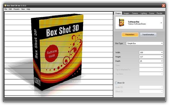Box Shot 3D - уникальная в своем роде программа, которая дает возможность создавать виртуальные трехмерные коробки для ваших электронных книг или программ. Вы вводите фронтальное, горизонтальное и профильное изображение, а программа генерирует на их основе изображение коробочной версии. В программе имеется возможность управлять шириной, глубиной и ориентацией вашей коробки и другие функции. В отличии от подобных программа, трехмрные коробки, сделанные в данной программе, получаются очень качественными и реалистичными. Программа подойдет как обычным пользователям, так и разработчикам программного обеспечения. В программу уже встроены готовые шаблоны коробок, в которых вам только останется изменить картинки на ваши собственные, повернуть коробку в нужную позицию, произвести рендеринг получившегося трехмерного изображения и сохранить готовую коробку в виде графического файла.