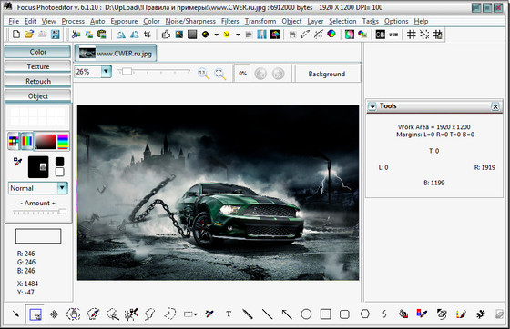 Focus Photoeditor - мощный и легкий в использовании редактор изображений, который вы сможете использовать для обработки и коррекции цифровых фотографий, а также для создания графики для ваших веб-сайтов, дома и офиса. Вы сможете получать фотографии с жесткого диска, другого приложения, а также с помощью сканера или фотокамеры и начинать их немедленную обработку в данном редакторе. В программе имеются функции для автоматического преобразования фотографий за один клик, благодаря чему вы сможете улучшить ваши фотографии за считанные секунды. Также вы сможете самостоятельно отредактировать внешний вид изображений при помощи встроенных в программу инструментов. Focus Photoeditor является неплохим выбором для новичка и для профессионального фотографа, т.к. в нем сочетаются множество качественных функций легких в использовании и настройке.