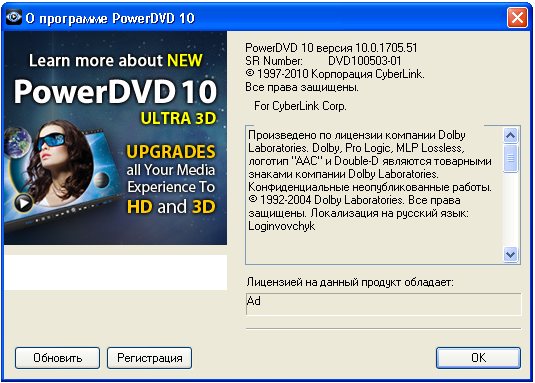 CyberLink PowerDVD 10.0.1705.51 Ultra + Rus