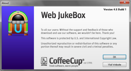 Скачать программу CoffeeCup Web JukeBox 4.6 (5,14 МБ):