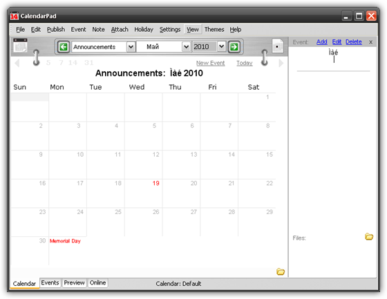 - Supports the FTP protocol of file transfer, that makes it easy to publish your calendars on the internet