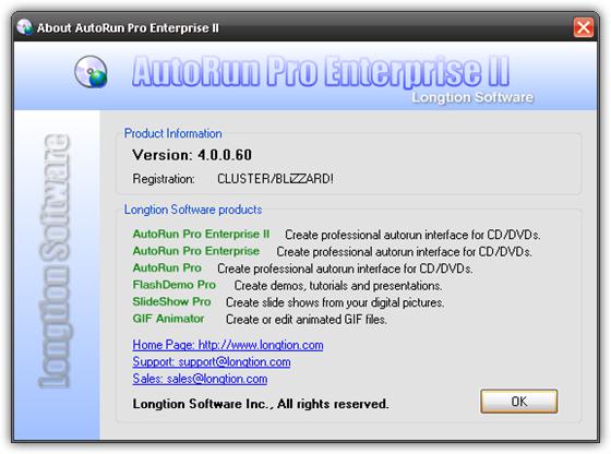 AutoRun Pro Enterprise II - это мощный визуальный инструмент для создания интерфейсов авто-загрузочных меню и презентаций профессионального уровня для CD/DVD. Это самый простой способ создания и редактирования таких интерфейсов в среде WYSIWYG (получаешь то, что видишь) - клик, перемещение и просмотр результата. Всё просто и быстро!