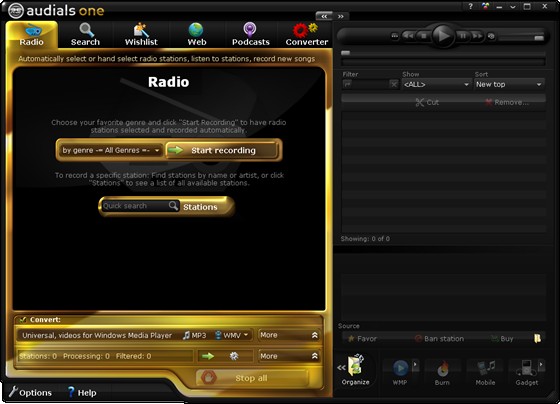 AudialsOne Platinum - это мощный комбайн для работы с видеосервисами и интернет-радио. Позволяет записывать фильмы которые вы смотрели по сети Интернет. Программа предоставляет вам возможность смотреть лучшие фильмы и Вам больше не придется беспокоиться о исчезновении их из интернет-магазинов видео. AudialsOne также может записывать клипы, захватывать простое и потоковое видео HD фильмов с видео-порталов и видео по запросу с веб-сайтов. Миллионы видео и аудио файлов теперь находятся в пределах вашей досягаемости.