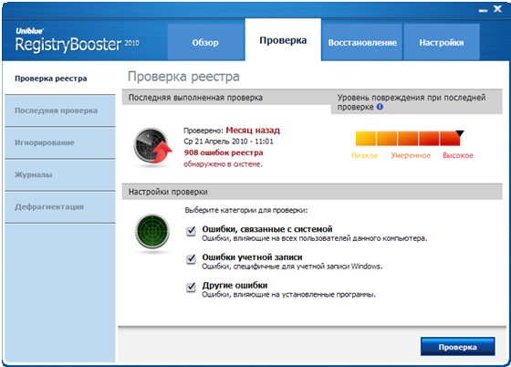 Скачать программу Uniblue RegistryBooster 2010 4.7.1.1 (5,05 МБ):