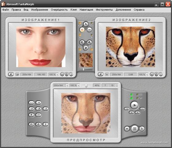FantaMorph - программа для создания анимированных изображений с эффектом морфинга и различных деформаций изображений. С помощью этой программы вы сможете создавать удивительные анимированные изображения, с плавным переходом от одной фотографии к другой с применением различных эффектов и деформаций. Программа имеет большое количество предустановок эффекта, поддерживает импорт видео, а также имеет широкие возможности по настройке и улучшению качества изображений. Вы сможете обрезать, поворачивать, регулировать цвет, добавлять различные надписи и потрясающие эффекты с помощью встроенных инструментов для редактирования без необходимости в обращении за помощью к сторонним приложениям. Программой поддерживается большое количество графических форматов, включая BMP, JPEG, TIFF, PNG, GIF, TGA, PCX и другие. Результат вы сможете экспортировать в AVI формат, анимированный GIF, флэш, формат экранной заставки, автономный EXE файл и в другие форматы.