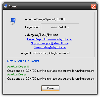 AutoRun Design Specialty - программа, являющаяся мощным инструментом визуализации для быстрого создания профессиональных интерфейсов авто запуска и презентаций для ваших дисков. Программа предоставляет легкий способ для создания, редактирования профессиональных интерфейсов авто запуска и генерации файлов авто запуска для дисков в CD и DVD форматах с помощью простого в использовании WYSIWYG интерфейса, через который вы с легкостью сможете управлять, редактировать, добавлять и удалять объекты при помощи простых перетаскиваний элементов, кликов мыши и функцией мгновенного пред просмотра готового интерфейса в действии (со всеми звуковыми и анимационными эффектами).
