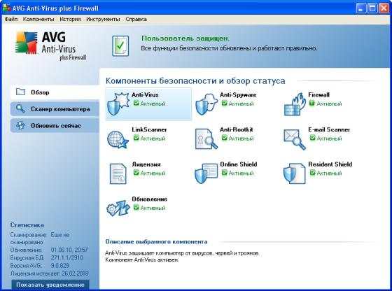 Скачать программу AVG Anti-Virus plus Firewall 9.0.819 Build 2842 (103,34 МБ):