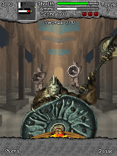 РПГ-бродилка с элементами квеста, шутера от первого лица и неплохой псевдотрехмерной графикой. Вам, т.е. Артуру, предстоит исследовать лабиринты замка Зеленого Рыцаря в поисках ключей от ворот, рыцарских мечей и щитов и после всего этого самих рыцарей. Против злобных врагов у вас будет арбалет с огненными стрелами. По завершении каждого уровня для перехода на следующий вам предстоит решать головоломки. Примечательным в игре является реализация поворотов на 90 градусов, протекающих с эффектом смазывания. Размеры экранов: 128x128, 176x220, 208x208, 240x320.