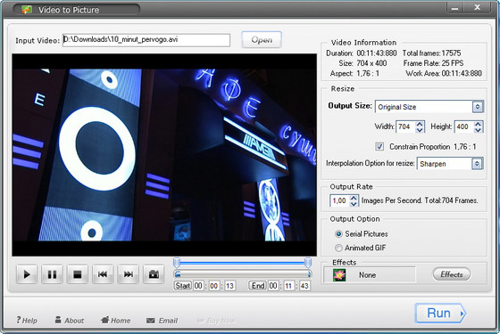 Set output period of time by input time manual, accurate to each frame (1 second = 24 frames). - Make special effect on output image.