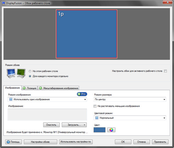 DisplayFusion - небольшая программа для управления обоями рабочего стола, нахождения и установки новых обоев, а также для их смены через указанный промежуток времени. Если у вас многомониторная система, то данная программа поможет вам устанавливать на каждый монитор разные обои по-отдельности - это и является главной особенностью данной программы, ведь стандартными средствами Windows это сделать пока что невозможно.