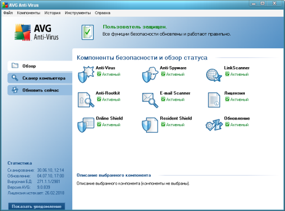 Скачать программу AVG Anti-Virus Professional 9.0.839 Build 2960 (106,75 МБ):