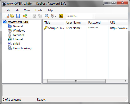 KeePass Password Safe - удобный менеджер паролей. Хранит пароли или другие секретные данные в хорошо защищенной базе данных, позволяя при этом рассортировать их по группам. С помоощью KeePass можно при необходимости распечатать базу данных, экспортировать ее в другие форматы (TXT, HTML, XML, CSV, ...), импортировать в другие форматы (TXT-файлы Password Safe v2, файлы CSV, ...), открыть и быстро вставить логин/пароль на веб-странице, производить поиск по базе, создавать стойкие ко взлому пароли и выполнять многие другие операции. Базы данных зашифрованы с использованием лучших и наиболее безопасных алгоритмов шифрования (AES и Twofish). Поддерживается расширение возможностей плагинами.