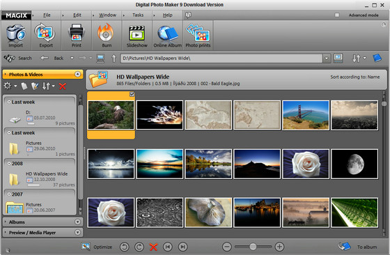 MAGIX Digital Photo Maker - мощная программа для работы с цифровым фотографическим контентом. Поиск изображений, организация их в коллекции, календарь, слайд-шоу, запись на диск, публикация в интернет, создание фото-архивов, редактирование изображений, добавление различных эффектов и многое, многое другое.