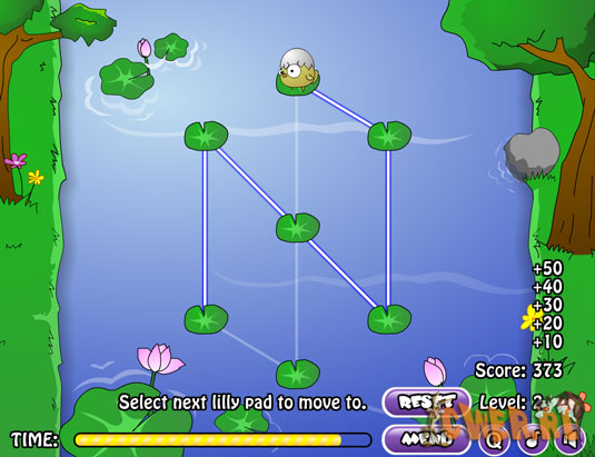 Игра на логику, необходимо соединить все листы кувшинки одной линией, причем дважды по одной прямой пройти нельзя.