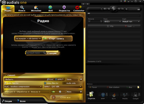 AudialsOne - мощный комбайн для работы с видеосервисами и интернет-радио. Позволяет записывать фильмы которые вы смотрели по сети Интернет. Программа предоставляет вам возможность смотреть лучшие фильмы и Вам больше не придется беспокоиться о исчезновении их из интернет-магазинов видео. AudialsOne также может записывать клипы, захватывать простое и потоковое видео HD фильмов с видео-порталов и видео по запросу с веб-сайтов. Миллионы видео и аудио файлов теперь находятся в пределах вашей досягаемости.