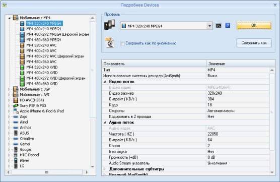 • MP4 файлы для форматов iPod/iPhone/PSP/BlackBerry
