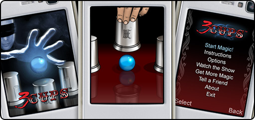 3Cups - фокус с наперстками. После запуска, вы увидите на экране три наперстка. Приподняв любой из них, вы демонстрируете вашему другу, что под наперстками находятся разноцветные шарики, причём цвета чередуются абсолютно в случайном порядке. Убедив друга в случайности выпадания какого-либо цвета, вы опускаете наперсток и предлагаете другу приподнять любой их них. Как только он сделает это, вы называете ему цвет шарика, находящегося под этим наперстком... Размер экрана: 240х320.