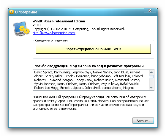 Скачать программу WinUtilities Pro 9.8 + Rus (9,19 МБ):