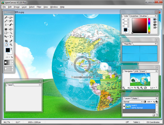 openCanvas - программа, дающая возможность художнику новичку/продвинутому с легкостью освоить компьютерную живопись. Это маленькая по размерам программа, с интуитивно понятным интерфейсом, без лишних наворотов, однако сочетает в себе основные достоинства таких гигантов СG (Computer Graphics), как Adobe PhotoShop и Corel Painter. Имеется палитра инструментов, основные фильтры, редактор кистей, в котором можно менять форму, чувствительность, твердость кисти, удобная палитра цветов и т.д. Особенно хорошо программа сочетается с графическими планшетами, поскольку реагирует на нажатия пера и его наклон. Т.к. программа была разработана японской компанией она, в основном, является инструментом мангаков и анимешников. Однако возможности программы практически не ограничены.