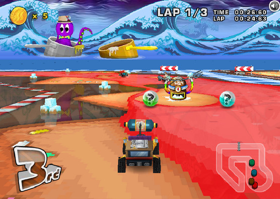 3D симулятор кольцевых гонок на картингах. Есть одиночные гонки, гонка на время и чемпионат, разные персонажи и уровни подготовки. Игра тормозит на слабых компьютерах!