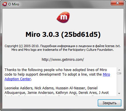 Скачать программу Miro 3.0.3 (29,75 МБ):