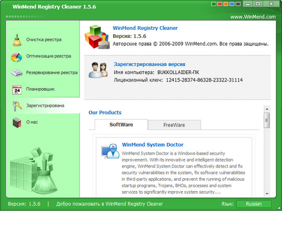 Скачать программу WinMend Registry Cleaner 1.5.6 (2,33 МБ):