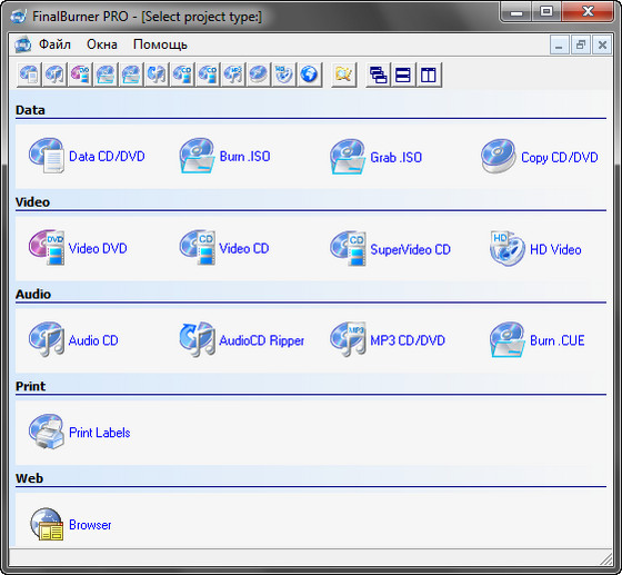 FinalBurner Pro - профессиональная версия пакета программ для записи CD, DVD и Blu-Ray дисков с различными данными, музыкой и видео. С помощью данной программы вы с легкостью сможете записать диск с данными, создать CD-аудио и DVD-видео диски, а также сделать ISO-образ диска. Для записи CD-аудио подходят многие музыкальные форматы, которые свободно импортируются при добавлении их в проект. Не менее полезной возможностью является импорт множества видео файлов для создания своих DVD-видео дисков. Поддерживается работа со всеми распространенными типами носителей, включая двусторонние DVD и Blu-Ray диски. Программа обладает простым в использовании пользовательским интерфейсом с многоязычной поддержкой, включая поддержку русского языка.
