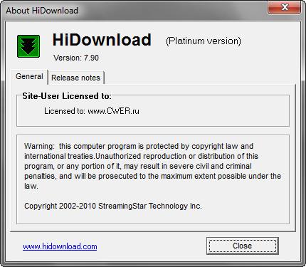 Скачать программу HiDownload Platinum 7.90 (3,37 МБ):