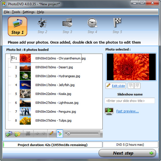VSO PhotoDVD - программа для создания анимированных cлайд-шоу для стационарных DVD-плееров. Утилита очень проста в использовании, позволяет использовать файлы в форматах JPG, GIF, BMP, ANI, PCX, EMF, WMF и т.д., в качестве сопутствующего саундтрека можно брать музыкальные файлы MP3, WMA, OGG, MPC, WAV и APE. VSO PhotoDVD поддерживается запись созданных cлайд-шоу на DVD-R/RW, DVD+R/RW диски, умеет работать с файлами, созданными в графических редакторах (таких как Alias, Autodesk, Kodak Photo-CD, Paintshop Pro, Photoshop и т.д.). PhotoDVD представляет особый интерес тем, что работает с форматами множества программ для работы с графикой, в том числе форматами Alias, Autodesk, Kodak Photo-CD, Paintshop Pro, Photoshop и т.д. В последней версии представлен новый алгоритм изменения размера изображения, расширена функциональность режима предварительного просмотра модуля проигрывателя и многое другое.