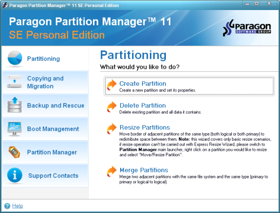 Скачать программу Paragon Partition Manager 11 build 9887 SE Personal x86 (103,19 МБ):