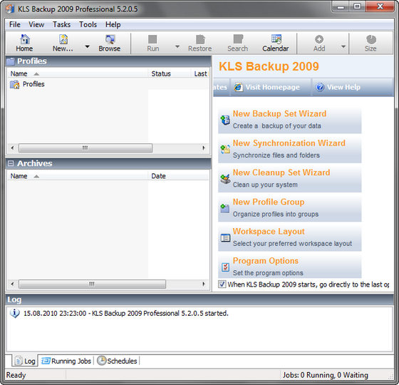 KLS Backup 2009 предназначена для архивирования и создания резервных копий Вашей важной информации. KLS Backup сжимает информацию в ZIP-архивы и позволяет их сохранять на любые накопители, включая сетевые и FTP-сервера. Работа программы достаточно быстра и корректна, возможность создания инкрементных копий поддерживается. В программе весьма неплохо организован планировщик заданий, а интерфейс программы будет понятен даже начинающим пользователям!