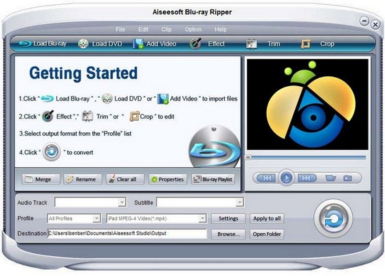 Aiseesoft Blu Ray Ripper - все-в-одном для конвертации Blu ray дисков, m2ts видео и обычных DVD дисков в разнообразные аудио и видео форматы. Этот инструмент конвертирует Blu Ray DVD и m2ts файлы в HD видео включая HD AVI, HD XviD/DivX, HD MP4, MOV, HD WMV файлы и другие обычные видео форматы: MP4, AVI, WMV, MKV, FLV, SWF. Blu Ray Ripper также извлекает аудио из DVD дисков и конвертирует его в MP3, AAC, M4A, и т.д.