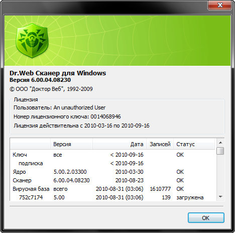 Работает Dr.Web CureIt без инсталляции. Расплата за бесплатность: В программу не входит модуль автоматического обновления вирусных баз, поэтому для того, чтобы просканировать компьютер в следующий раз с самыми последними обновлениями вирусных баз, нужно будет снова скачать Dr.Web CureIt!