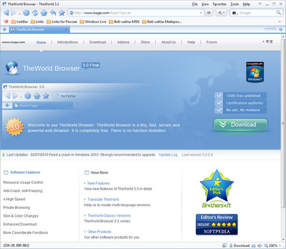 Скачать программу TheWorld Browser 3.2.0.9 Final (1,59 МБ):