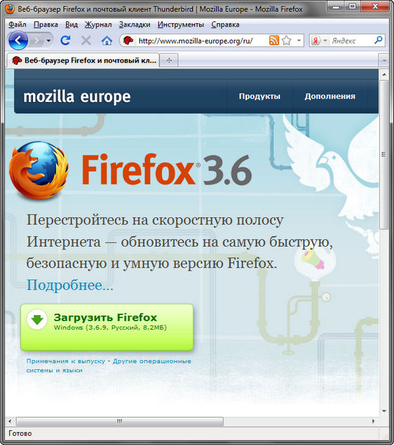Скачать программу Mozilla Firefox 3.6.9 Final (8,38 МБ):