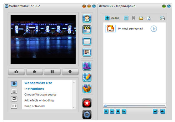 WebCamMax - продвинутая утилита для работы с веб-камерой. Программа, добавляющая изумительные видеоэффекты на все вебкамеры, даже без реальной камеры. Программу можно использовать по умолчанию в таких приложениях, как ICQ, AIM, MSN, Camfrog, Skype, Paltalk, Yahoo, ANYwebcam, Stickam. Можно настроить WebcamMax Full так, чтобы она начинала функционировать и вести трансляцию с камеры только в том случае, когда объектив зафиксирует движение.