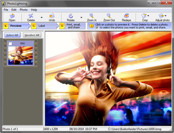 Photolightning - программа, позволяющая обрабатывать цифровые фотографии - процессы загрузки, печати и пересылки фотографий сведены буквально к нажатию одной-двух кнопок. Photolightning автоматически активируется при подключении к компьютеру цифрового фотоаппарата, автоматически загружает фото с носителя и (опять же автоматически) задает файлам имена. Имеется опция быстрой отправки картинок по электронной почте, а также минимальные "способности" редактирования - можно подкорректировать яркость и резкость, изменить размер, удаление эффекта красных глаз, распечатать фотографии и многое другое.
