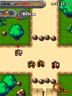 Добро пожаловать в средневековье! Веселые гонки в стиле флинстоунов могут омрачиться различными препятствиями в виде неизвестно кем разрытых ям, шастающих туда-сюда динозавров, построенных прямо посередине трассы шалашей и ужасающих завихрений! Спасти вашу скорость в гонке могут только пески и захватывающие трамплины! Вперед, к победе среди гомо сапиенсов! Размеры экранов: 240x320.