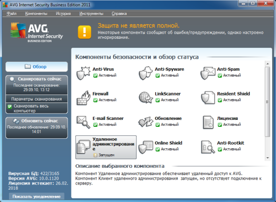 Скачать программу AVG Internet Security Business Edition 2011 v10.0.1120 x86 (146,81 МБ):