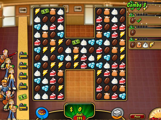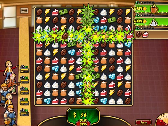 Coffee Rush 2 - продолжение игры Coffee Rush жанра match-3 с забавной графикой.