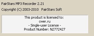 Скачать программу FairStars MP3 Recorder 2.21 + Rus (4,37 МБ):