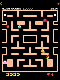 Всемирно известная классическая аркада. В игре 256 уровней, несколько макетов лабиринтов и различные уровни сложности. Эта игра уже является одной из самых популярных мобильных игр в США. Размеры экранов: 128х128, 128х160, 176х208, 176x220, 240x320, 320x240, 352х416, 360x640, 480х800.
