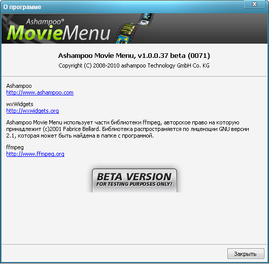 Скачать программу Ashampoo Movie Menu v1.0.0.37 (88,17 МБ):