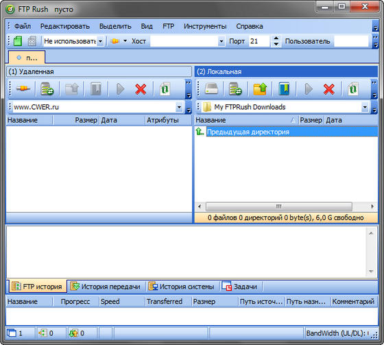 FTPRush - это простой и удобный FTP-клиент, который позволяет не только переслать файлы между компьютером и сервером (туда и обратно), но также поддерживает передачу файлов непосредственно между серверами (FXP). Программа позволяет работать сразу с несколькими FTP одновременно, обладает гибким, настраиваемым интерфейсом, имеет встроенный Менеджер Задач, поддерживает работу с прокси. FTPRush может работать с SSL-соединениями, автоматически проверять SFV-файлы при скачивании и загрузке и многое другое.