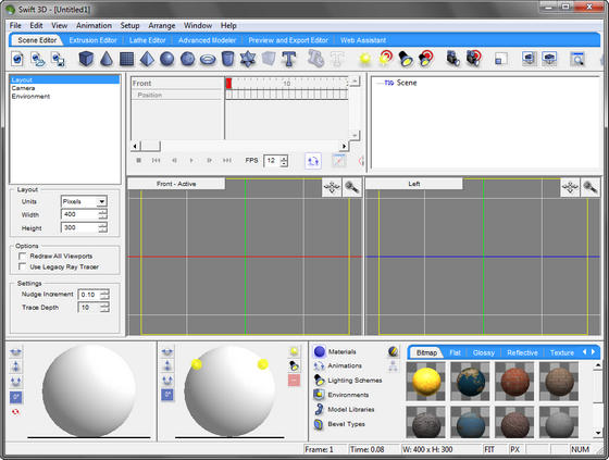 Данной программе отведена особая роль - это приложение для векторного трехмерного моделирования, анимации и визуализации. В основном она адресована Web-дизайнерам, использующим технологию Flash для создания мультимедийных материалов в формате rich-media, и поэтому набор его функциональных возможностей ориентирован на создание анимационных сцен. Поскольку трехмерная анимация в Интернете (а особенно в формате Flash) представляет собой покадровый процесс, средства моделирования и анимации программы обеспечивают пользователя только самыми необходимыми функциональными возможностями. Каждый элемент интерфейса и механизма визуализации Swift 3D служит для ускорения и облегчения процесса создания трехмерной графики для Flash.